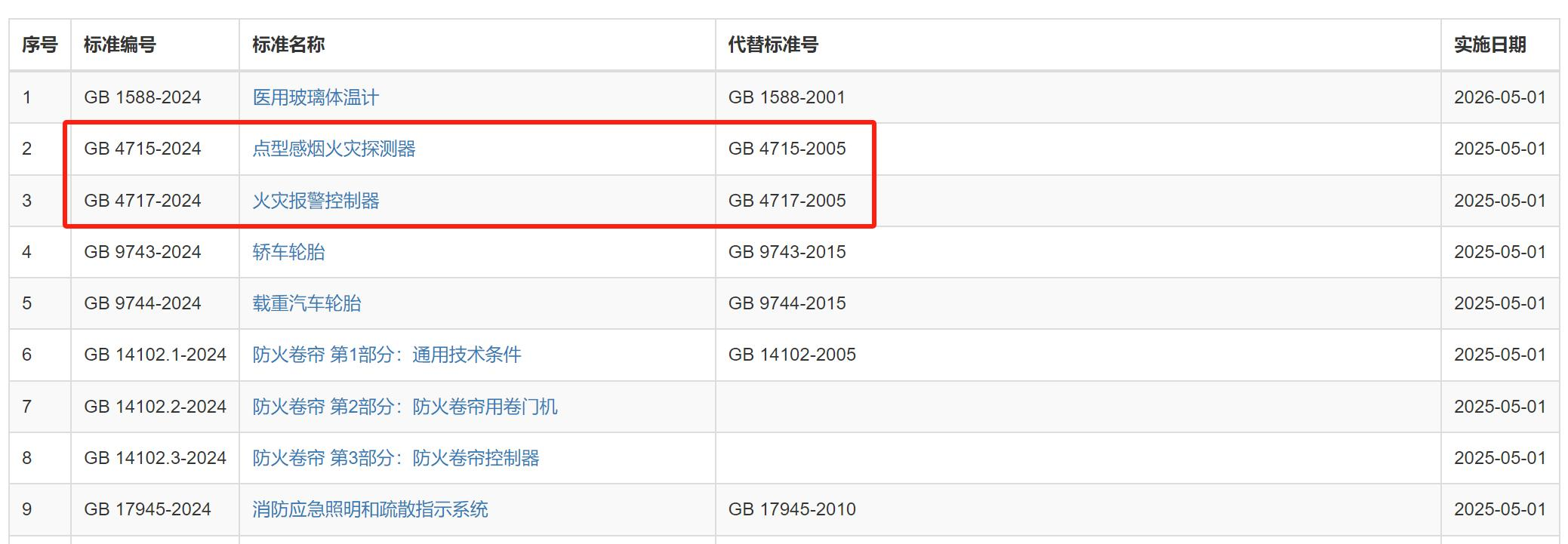 《点型感烟火灾探测器》强制性国家标准已经批准发布,2025 年 5 月 1 日正式实施。